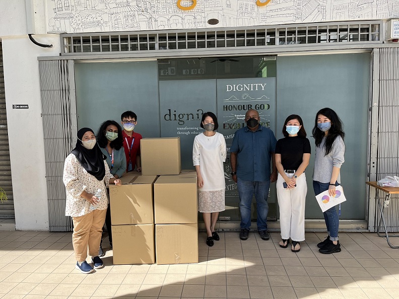 OS HRS Chief Executive Officer Shawn Suresh (middle) and staff of OS HRS handing over the refurbished computers to Dignity for Children Foundation hosted by Renee Koo